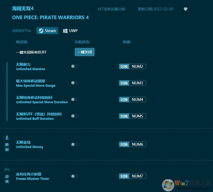 海贼无双4是一款光荣特库摩制作万代发行的海贼动作类PC端游戏,今天为广大玩家朋友带来的是海贼无双4七项修改器,广大玩家朋友在使用了这款修改辅助工具以后可以大幅度的减少玩家的游戏困难,从而极大的优化提升游戏的体验,更好的进行感受这款游戏,了解这款游戏的剧情。现已支持Steam、UWP等多个游戏版本,喜欢海贼无双4的广大玩家朋友们走过路过千万不要错过,赶紧来下载使用体验一下看看吧!