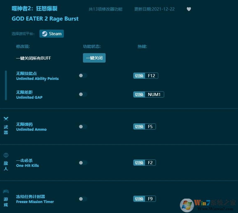 3、运行“噬神者2:狂怒爆裂”游戏4、游戏运行后点击“加个Buff"按钮,当然大家也可以进行单项修改