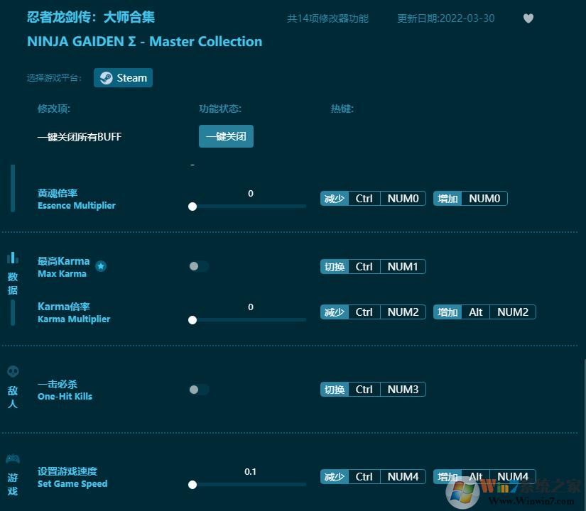 3、运行“忍者龙剑传:大师合集”游戏4、游戏运行后点击“加个Buff"按钮,当然大家也可以进行单项修改