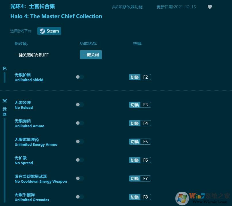 3、运行“光环4:士官长合集”游戏4、游戏运行后点击“加个Buff"按钮,当然大家也可以进行单项修改