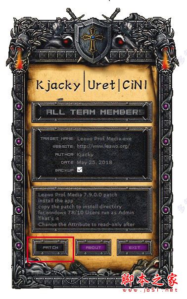 5、双击“leawo.prof..media.7.9.0.0-patch.exe”点击左下方的“patch”按钮,即破解完成,见下图所示: