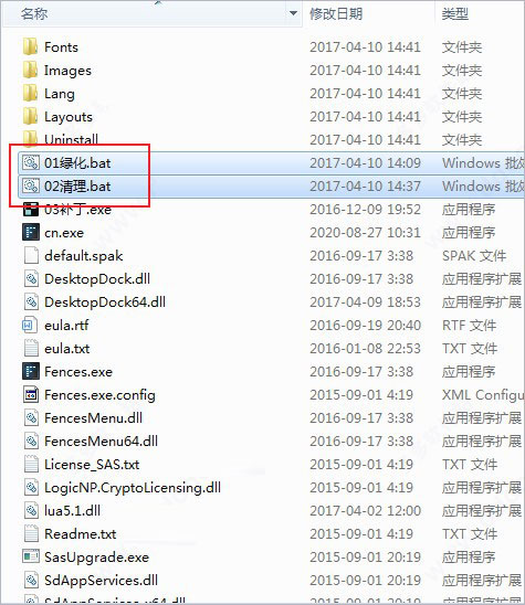 注意:若之前安装过fences的请将fences卸载,并运行"02清理.bat"进行清理;