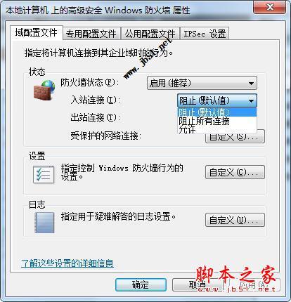 1、打开控制面板\所有控制面板项\Windows 防火墙,选择高级设置,如图所示: