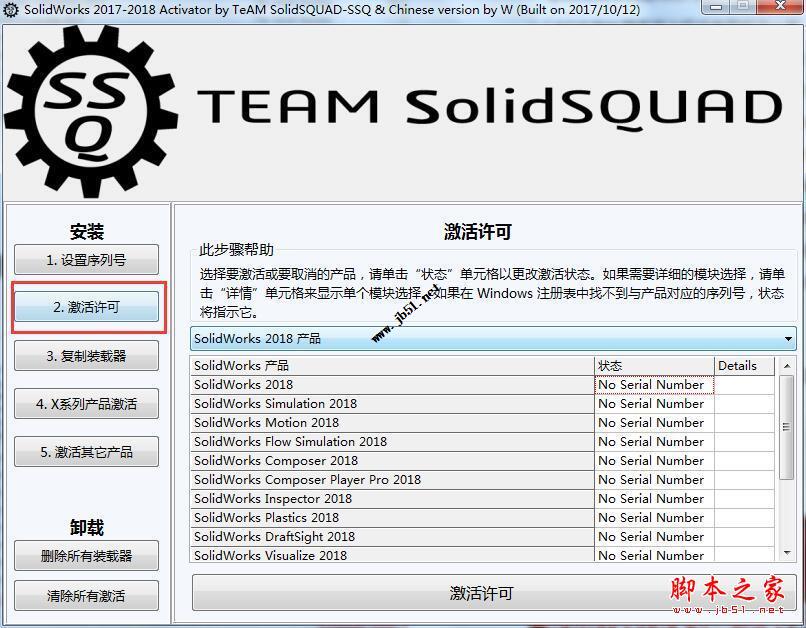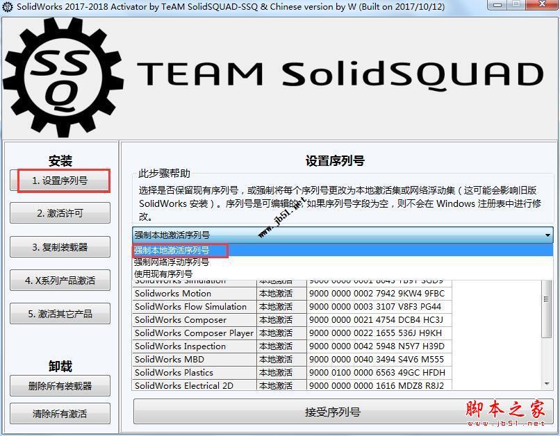 4、打开SolidWorks.2018.Activator-SSQ文件夹,运行注册机,将选项修改为“强制本地激活序列号”如图所示: