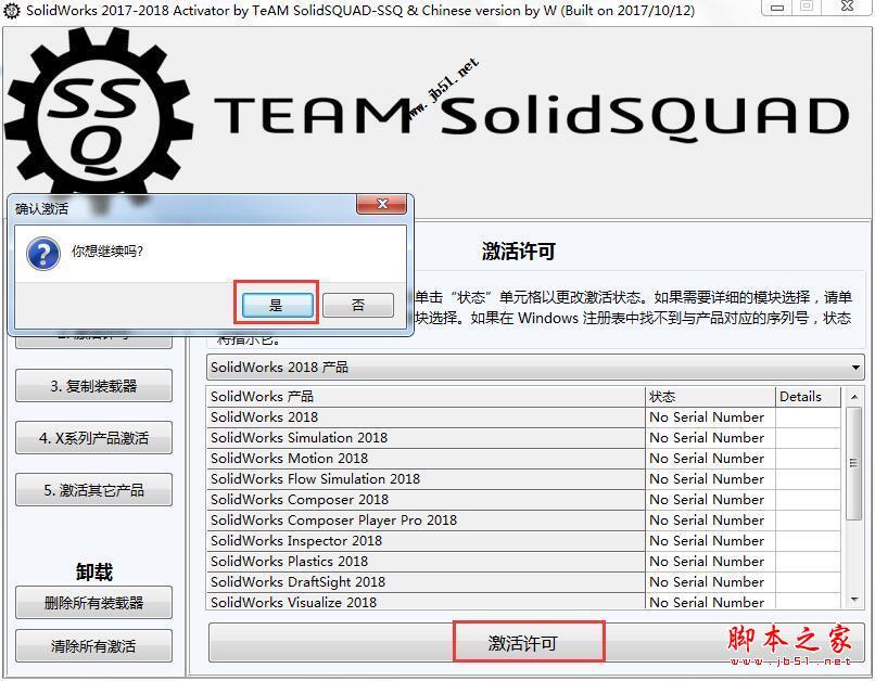 6、单击下面的激活许可按钮,再单击”是“按钮