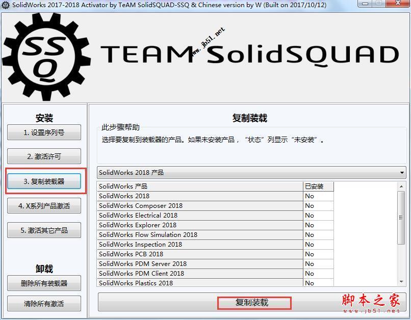 13、安装完成后,回到注册机,打开“3.复制装载器”项,点击“复制装载器”