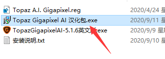 1、双击【Topaz Gigapixel AI 汉化包.exe】,如下图所示: