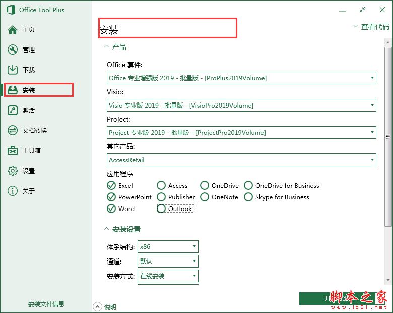 1、安装 Office。可以一次性安装 Office、Visio、Project,还可以选择不同的授权版本。自定义选择 Office 的组件,语言。还可以保存配置为 XML,用于批量部署。