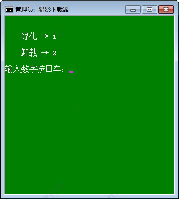 2、运行文件“绿化和卸载.bat”按1进行绿化操作,如下图所示:
