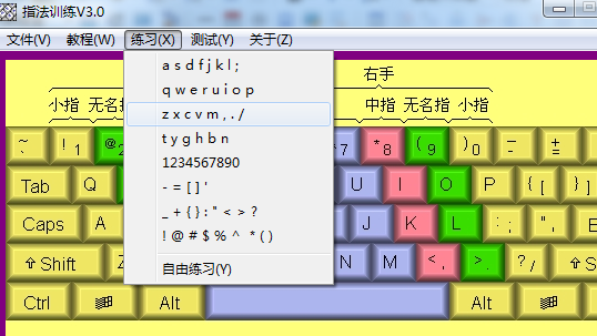 指法训练软件是一款键盘盲打练习软件,能够帮助用户进行盲打键盘的的指法训练,软件会统计敲击的字符数、正确率和用时,支持键盘按键练习、全部字符练习、手指位置显示和字符大小写区别练习,帮助用户更好的练习盲打能力,提高打字效率!