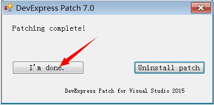 旧版步骤:双击【DevExpress.Patch 】的程序包,弹出【DevExpress.Patch】的窗体,直接点击【Apply patch】按钮就开始DevExpress的破解。成功后会弹出【I’m done】的提示信息。