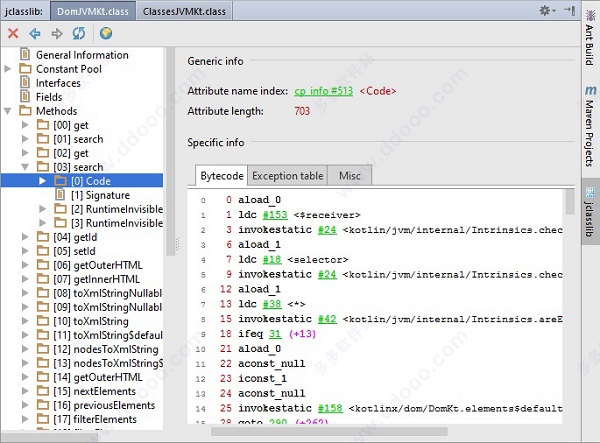 4、在字节码显示的底端,如今有一个下拉框,在其中包括全部应用的操作码和一个按键,以显示Java语言标准中相对应的官方网文本文档。