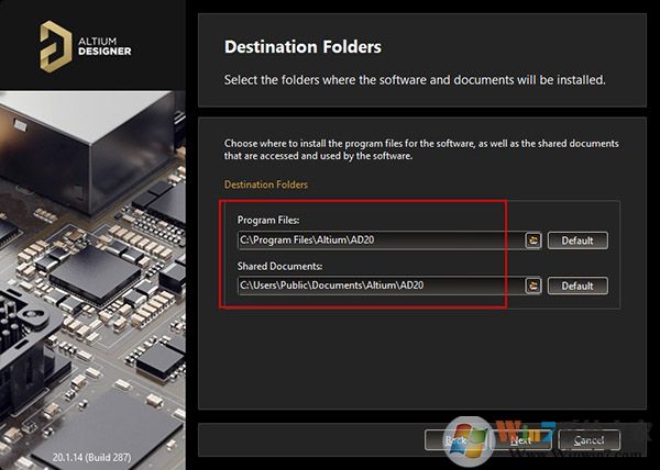 5、选择软件安装路径,默认安装目录【C:\Program Files\Altium\AD20】,点击Program Files栏右侧“文件夹图标”可更改软件安装路径;