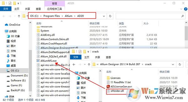 8、接着,我们需要打开Crack文件夹,将shfolder.dll文件,复制或者替换到软件安装目录中;