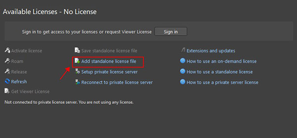 9、因为没有在创建桌面快捷方式,所以在电脑左下角搜索并打开软件,点击【Add standalone license file】;