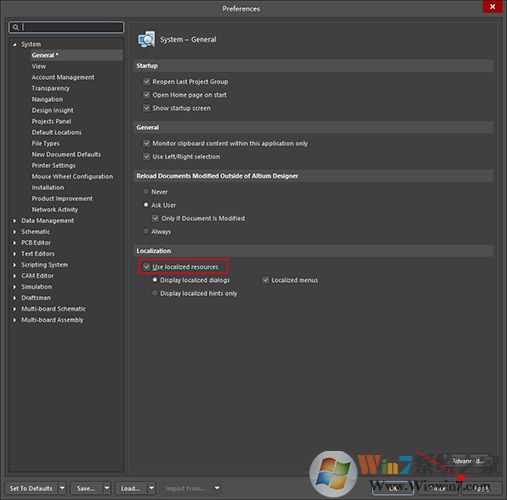 12、点击右上角设置的图标,找到General页面,勾选“Use localized resources”,将会弹出一个界面,选择OK就可以了,最后再点击右下角的OK;