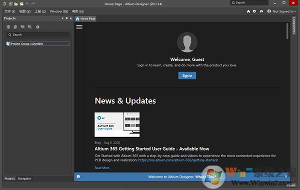 13、关闭软件,重新启动Altium Designer 2020破解版,就是中文界面了,如下图所示;
