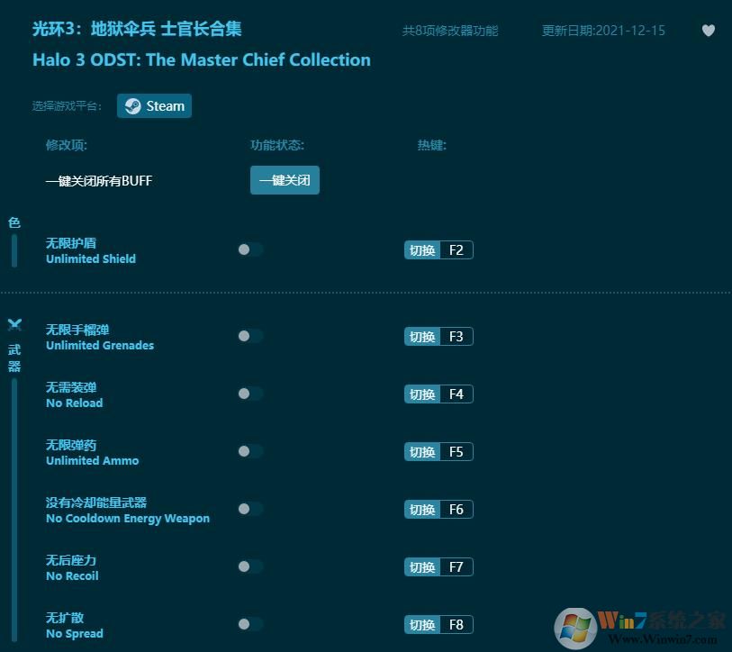 3、运行“光环3:地狱伞兵 士官长合集”游戏4、游戏运行后点击“加个Buff"按钮,当然大家也可以进行单项修改