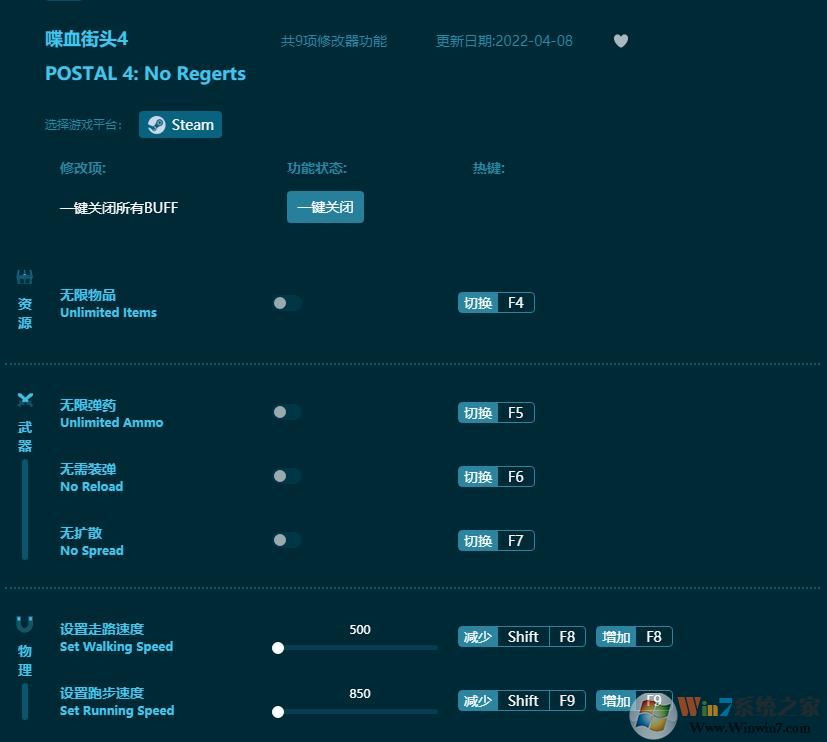 3、运行“喋血街头4”游戏4、游戏运行后点击“加个Buff"按钮,当然大家也可以进行单项修改