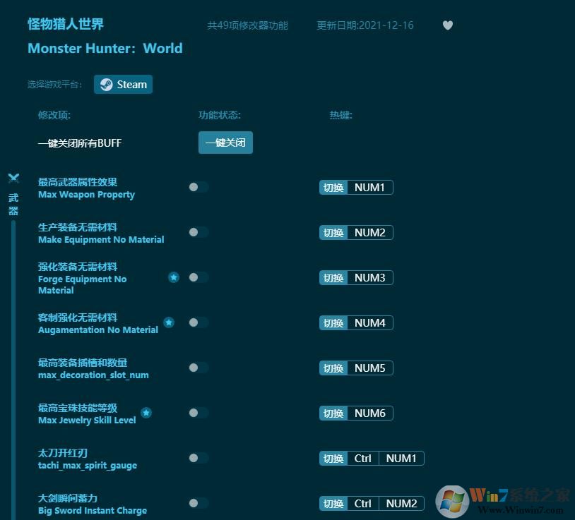怪物猎人世界修改器功能说明