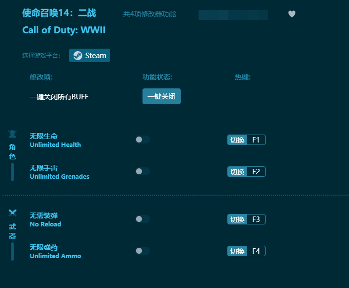 使命召唤14二战修改器功能说明
