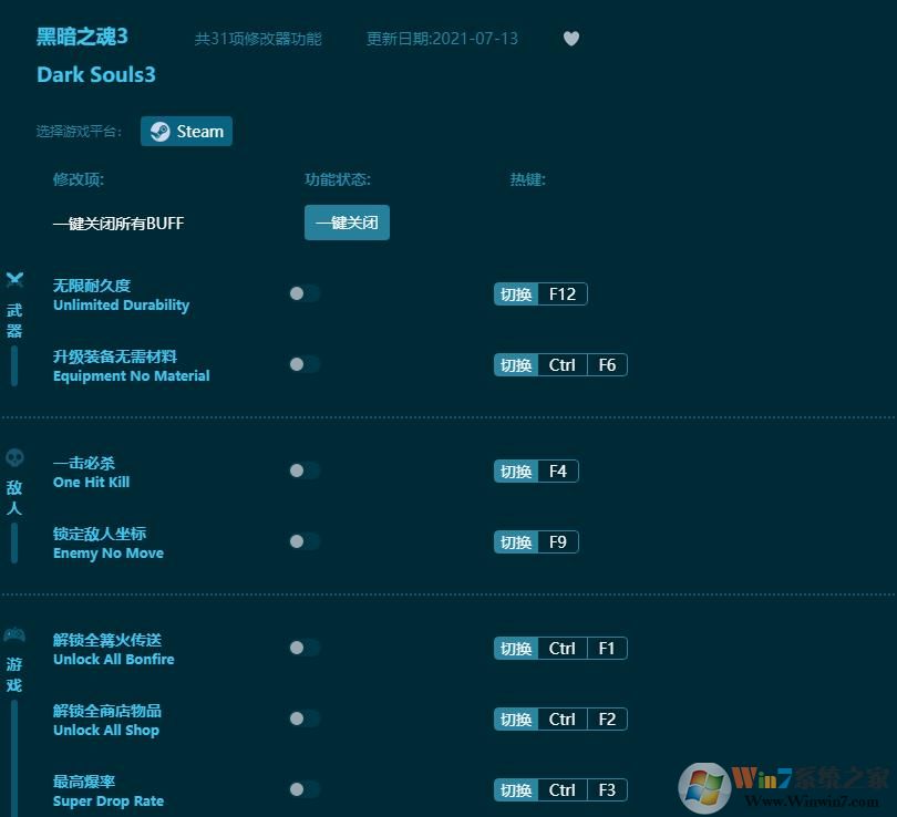 以上便是winwin7下载小编给大家分享介绍的黑暗之魂3修改器,对“黑暗之魂3”游戏玩家来说是非常不错的一个选择!