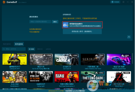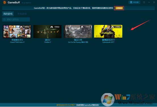 1、从本站下载安装GameBuff修改器2、启动软件GameBuff会自动检测,电脑中的所有游戏,默认的把游戏显示到“我的游戏”之中,只需要打开首页点击右上角的立即激活,输入在游戏加加领取的激活码即可免费使用GameBuff修改器。