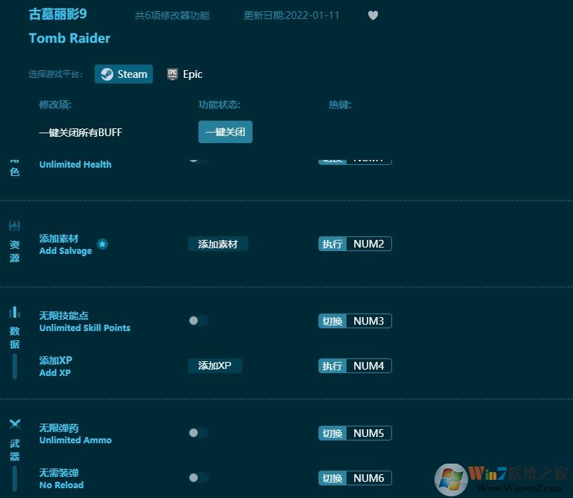 以上便是winwin7下载小编给大家分享介绍的古墓丽影9六项修改器,对广大《古墓丽影9》游戏玩家来说是非常不错的一个选择!