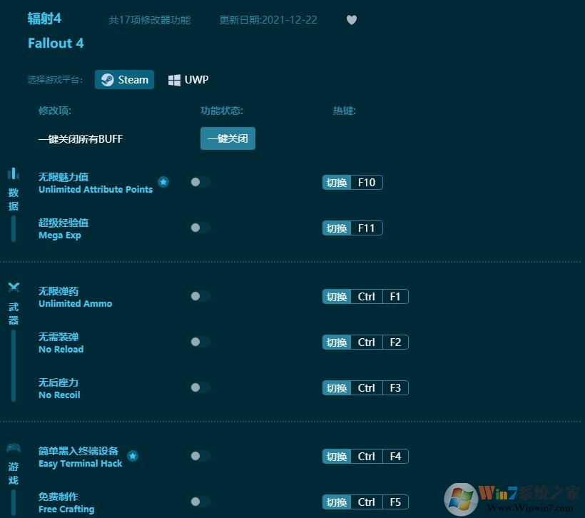 3、运行“辐射4”游戏4、游戏运行后点击“加个Buff"按钮,当然大家也可以进行单项修改