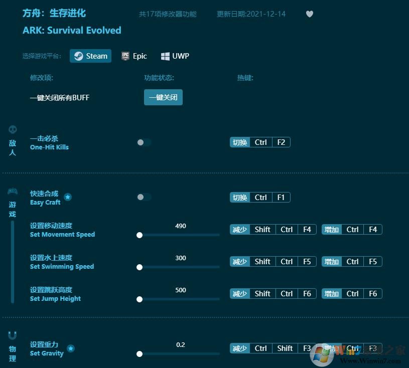 3、运行“方舟:生存进化”游戏4、游戏运行后点击“加个Buff"按钮,当然大家也可以进行单项修改