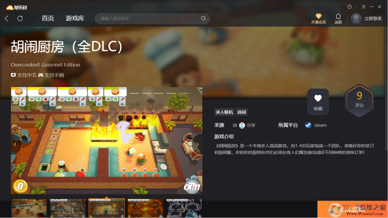 3、在客户端当中的游戏库找到“胡闹厨房”游戏启动即可;