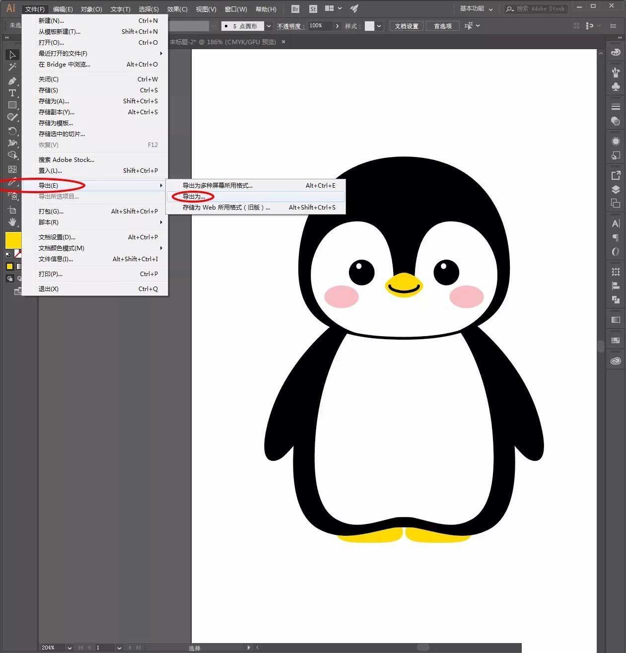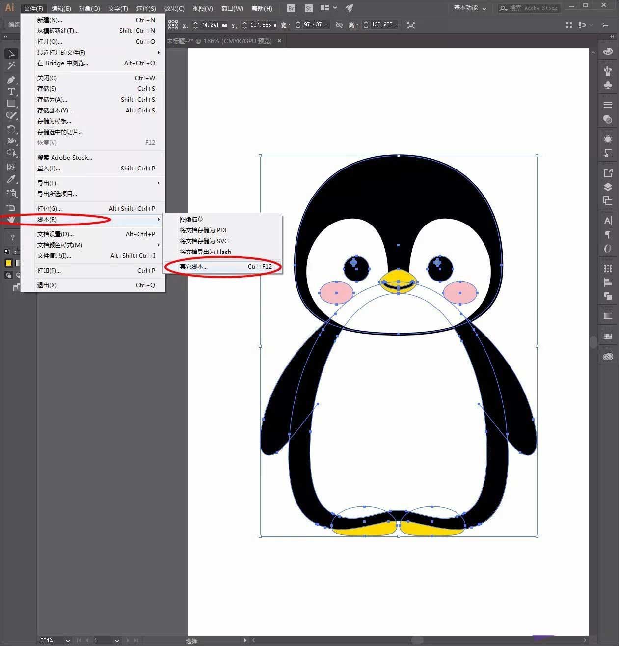 (如图)打开一个矢量图形文件(我打开的是一只可爱的企鹅宝宝:),选择主菜单中的(文件-----脚本-----其他脚本), 找到刚才下载的文件夹中的 ai2PSD.jsx 这个文件