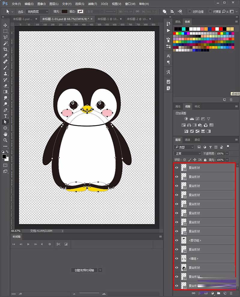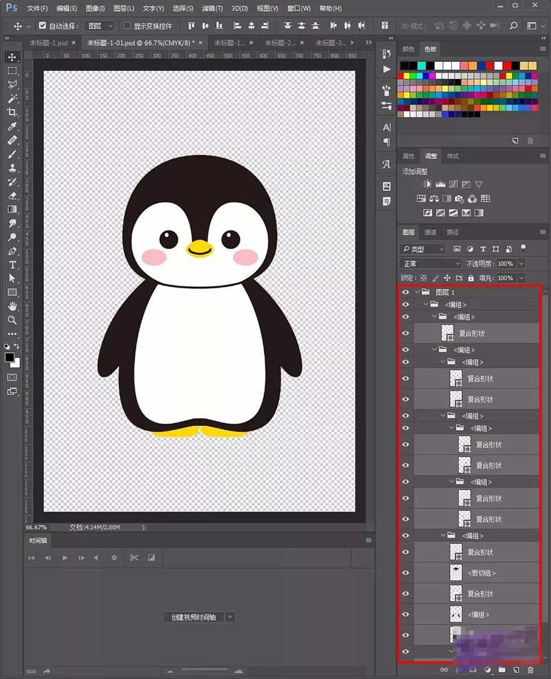 第三步: 在Photoshop软件中打开生成的这个PSD文件,大家会看到右侧的图层层级很乱有多个文件夹(如图3),我们用(移动工具V)在画板中框选一下图形就可以把所有相关的图层都选上,然后在右侧图层上点击鼠标右键选择(从图层建立组...)(如图4)
