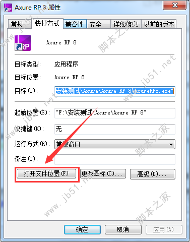 第二种方法:同样在桌面找到Axure RP 8.1图标,右键点击——属性——打开文件位置
