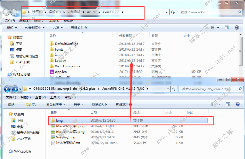 2、将“lang”文件将,复制到Axure RP 8.1软件安装根目录