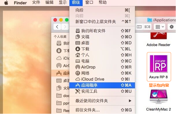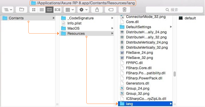 ① 在 应用程序 文件夹里找到Axure RP 8.app程序,然后右键选择“显示包内容”,然后依次打开Contents/Resources文件夹;