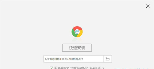 1、下载ChromeCore双核浏览器并解压,双击“ChromeCore.exe”进入安装向导,勾选“阅读并同意软件许可协议”,默认安装路径为:C:\Program Files\ChromeCore,点击快速安装。