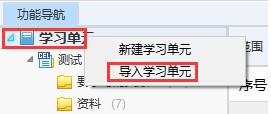 右键单击“学习单元根节点”,右键菜单上的“导入学习单元”。