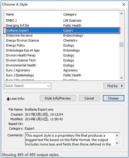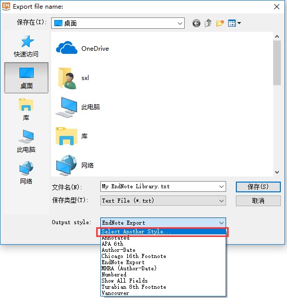 如果保存类型中不存在Endnote Export,选择 Output style中的Select Another Style,然后选择Endnote Export。