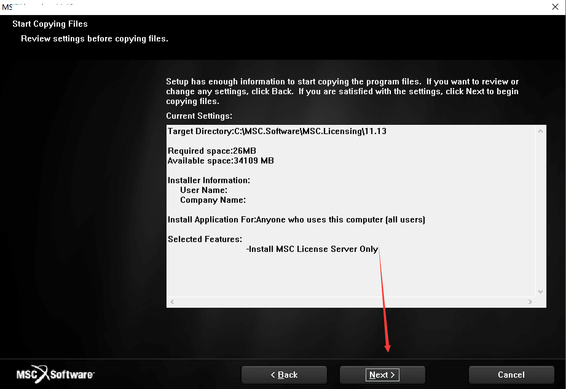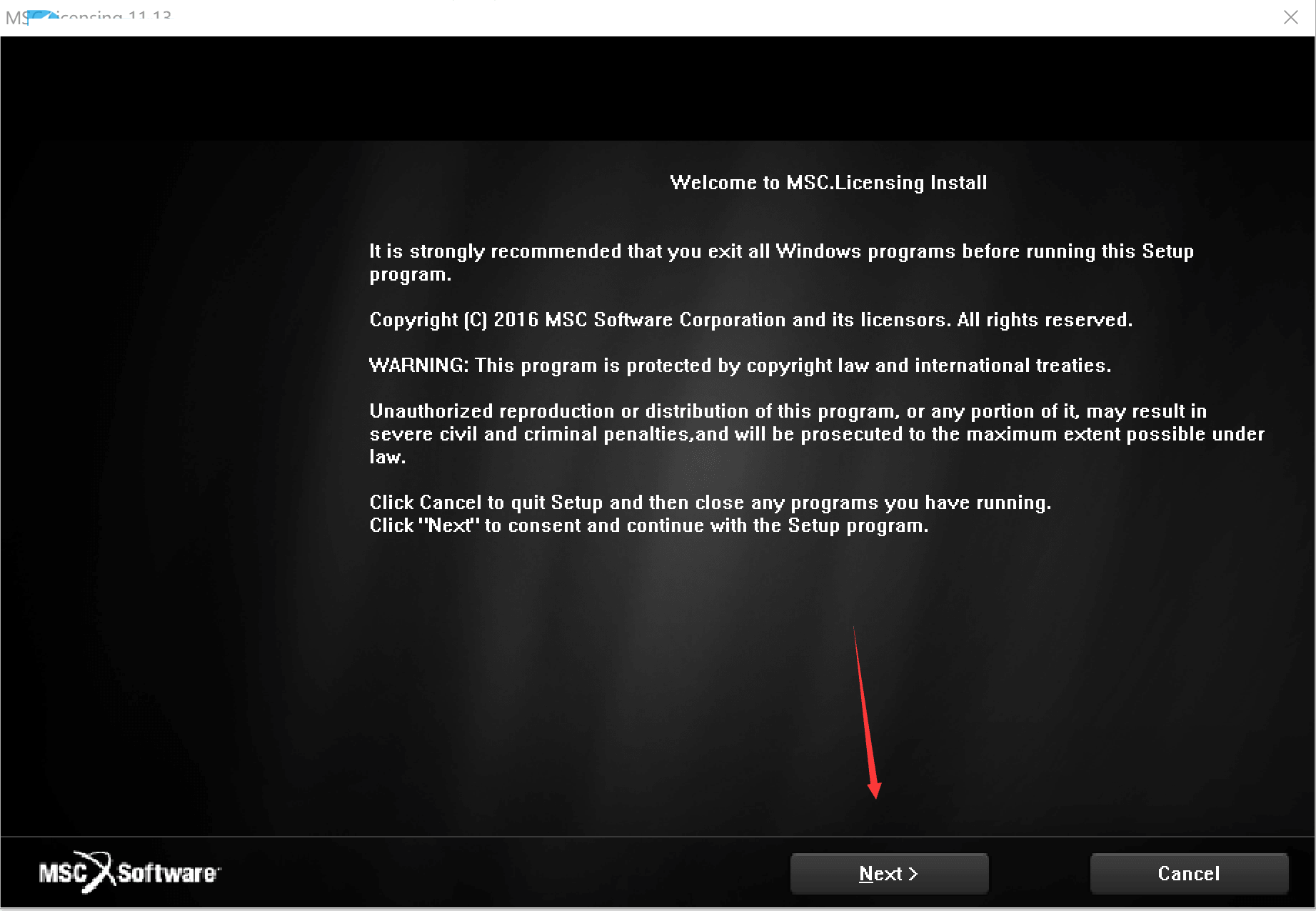 4、接着我们安装激活服务器,点补丁文件夹内的MSC_licensing_11.3.1_windows 64.exe,点next继续,如下图所示: