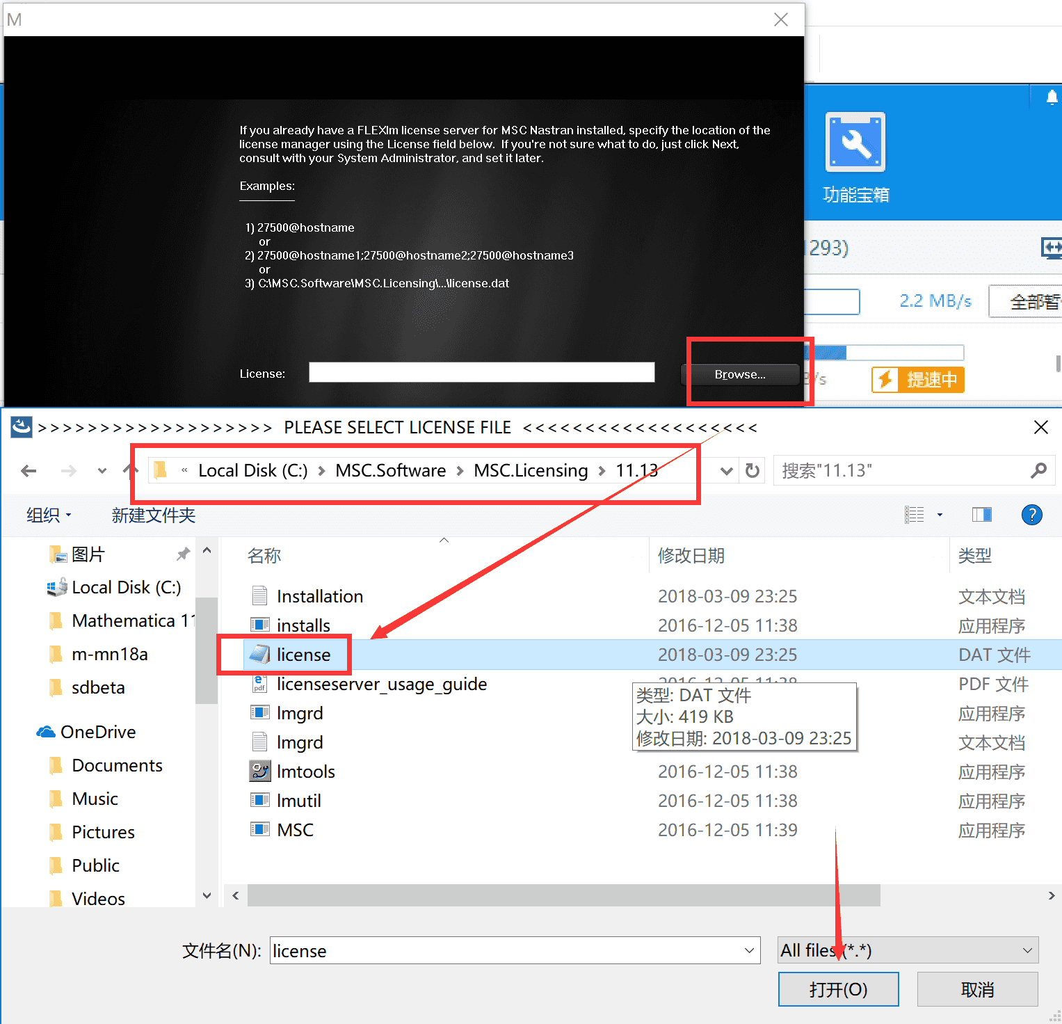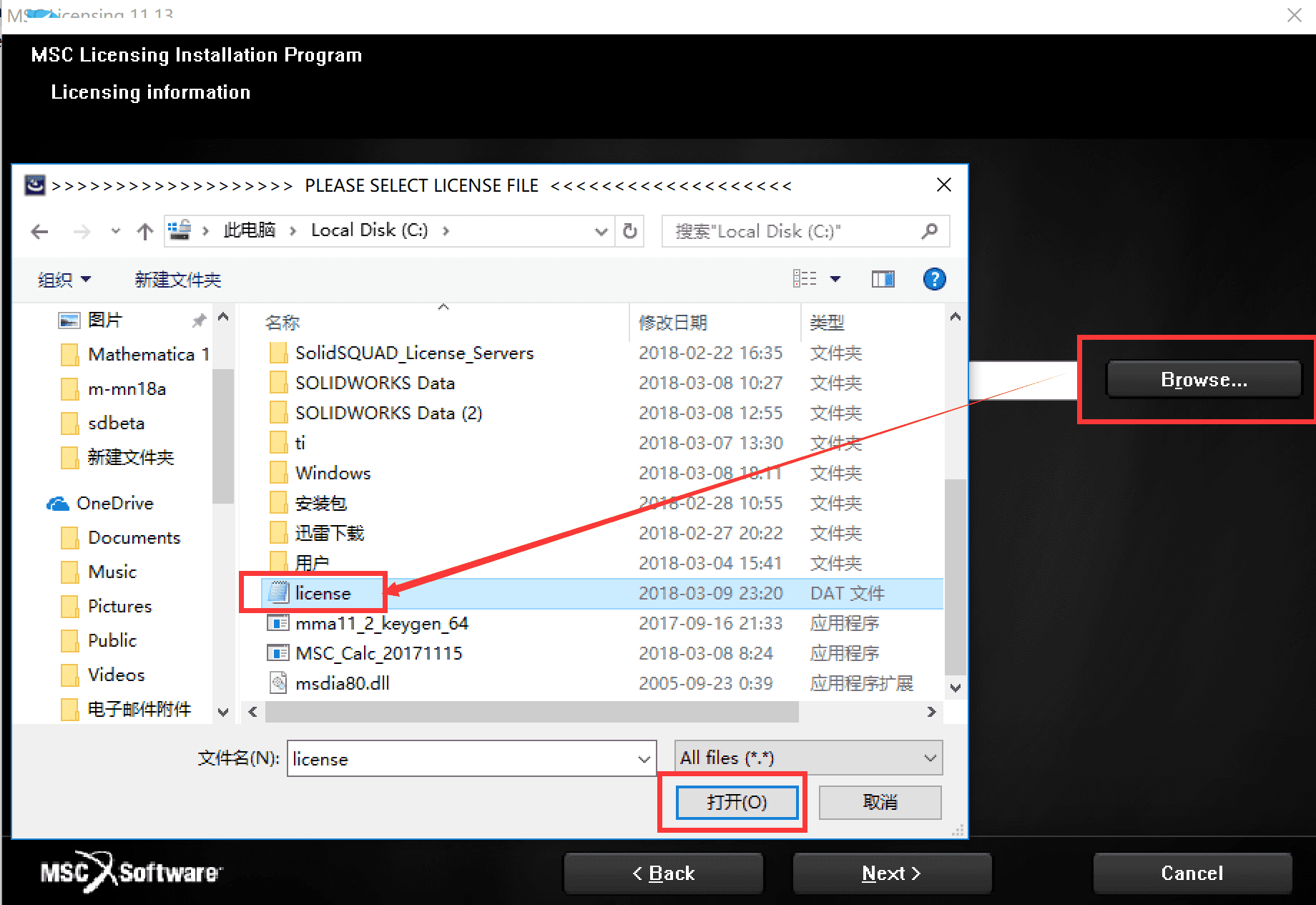 10、选择在c盘生成的license.dat文件,如下图所示: