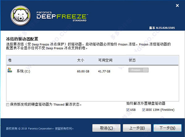 4、冰点还原标标准版(Deep Freeze)配置设置,这个根据需求调节即可,如winwin7分享的图片: