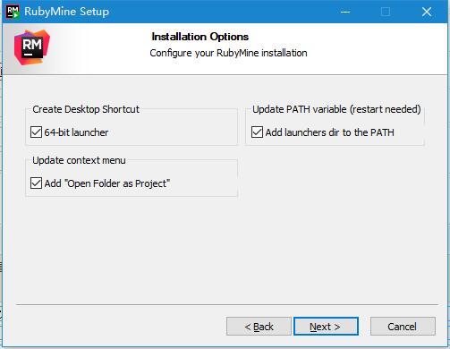 4、勾选创建rubymine 桌面快捷方式,小编选择64位,如下图所示: