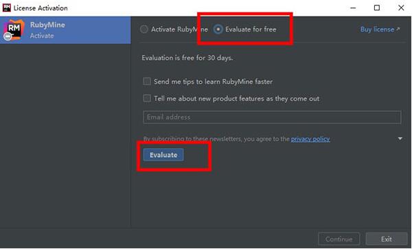 7、运行,跳过设置,勾选Evaluate for free,点击Evaluate,如下图所示: