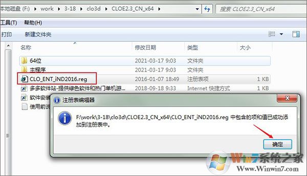 8、回到下载解压文件中双击运行"CLO_ENT_iND2016.reg"注册表;