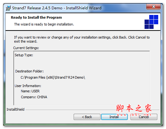 3、选择软件安装目录,默认为“C:\Program Files (x86)\Strand7 R24 Demo\”