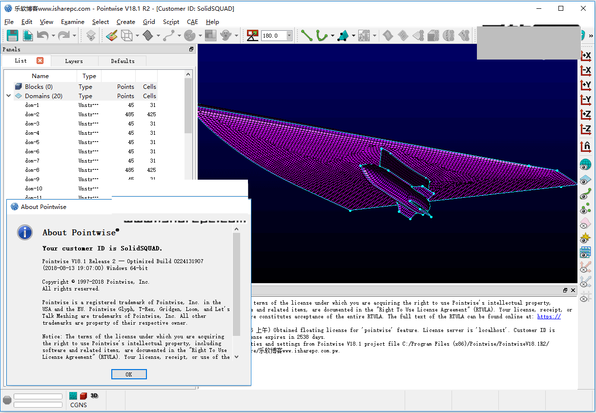 9. Gridgen和Pointwise共用一个license,购买任一款,用户可使用两款软件。