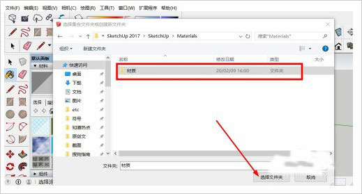 4、系统弹出文件夹浏览窗口,选中材质库文件夹,点击【选择文件夹】,见下图所示:
