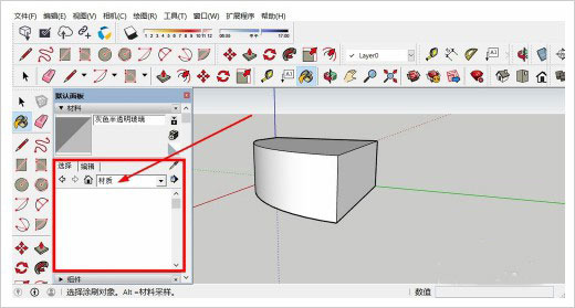 1、使用su开启模型文件,左侧工具栏,点击【材质】,见下图所示: