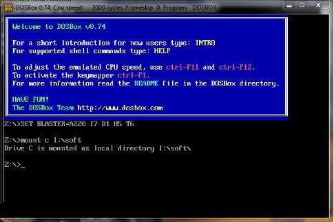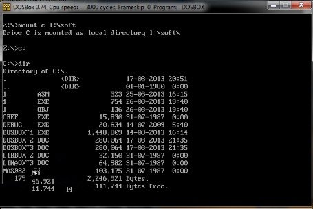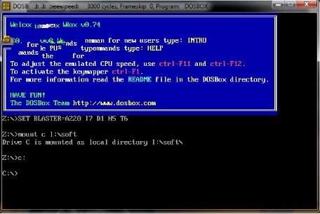6.将MASM文件夹里的全部文件拷贝到一个目录下,比如L:\soft下,然后将这个目录挂着为DOSBox的一个盘符下,挂载命令为Mount c L:\soft,见下图所示: